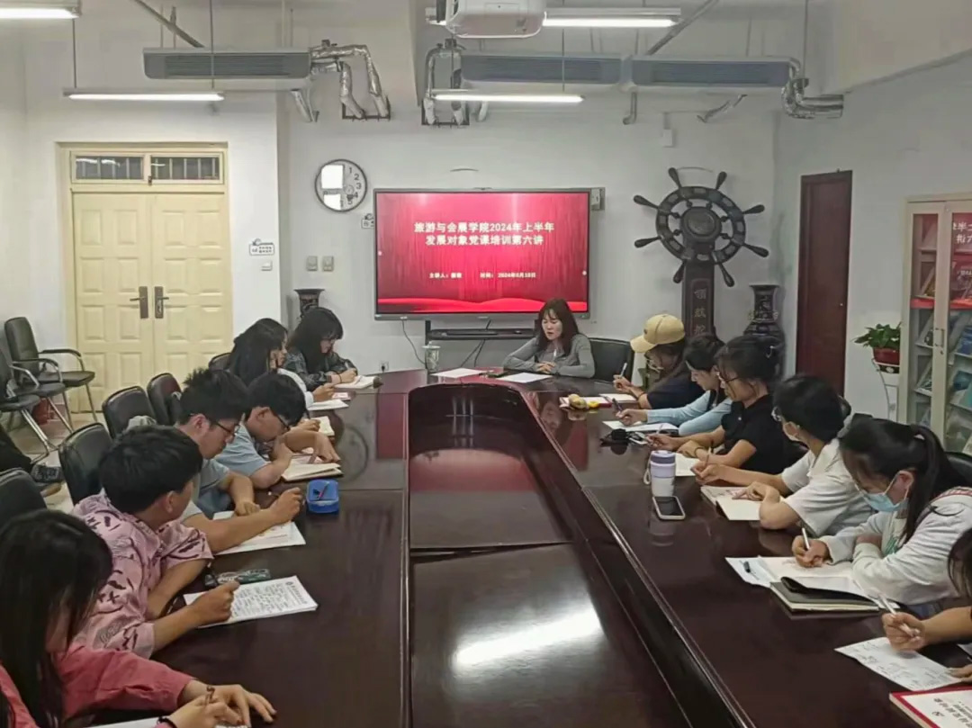 为了确保党员发展质量,贯彻党内规定和推动基层组织建设,5月15日,旅游与会展学院于教学科研楼875会议室召开2024年上半年党员发展对象培训班党课培训第六讲,2024年上半年全体发展对象到场参加。