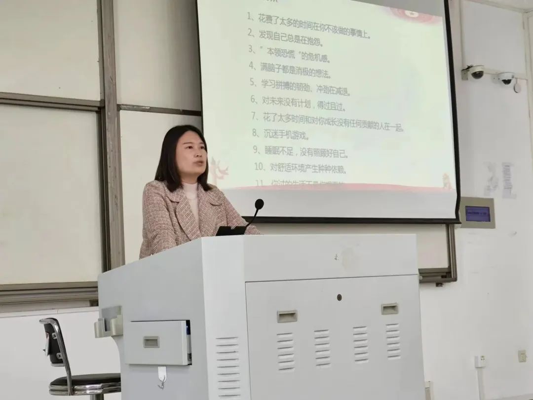 课上,王莹首先剖析大学生的学习现状,提醒学生们应当有危机感,不断自省并合理规划大学时光,致力于个人成长。紧接着,她结合习近平总书记的讲话精神,以旅游行业发展为例,强调当代青年应该在奋进中磨炼本领,学习科学知识的同时增强责任意识和奉献精神,并将个人的成长成才与国家命运紧密联系在一起。最后,王莹以考研为切入点,提醒同学们对此应认真考虑,并再次强调了学生们要明晰大学四年的规划,积极朝着目标奋进。