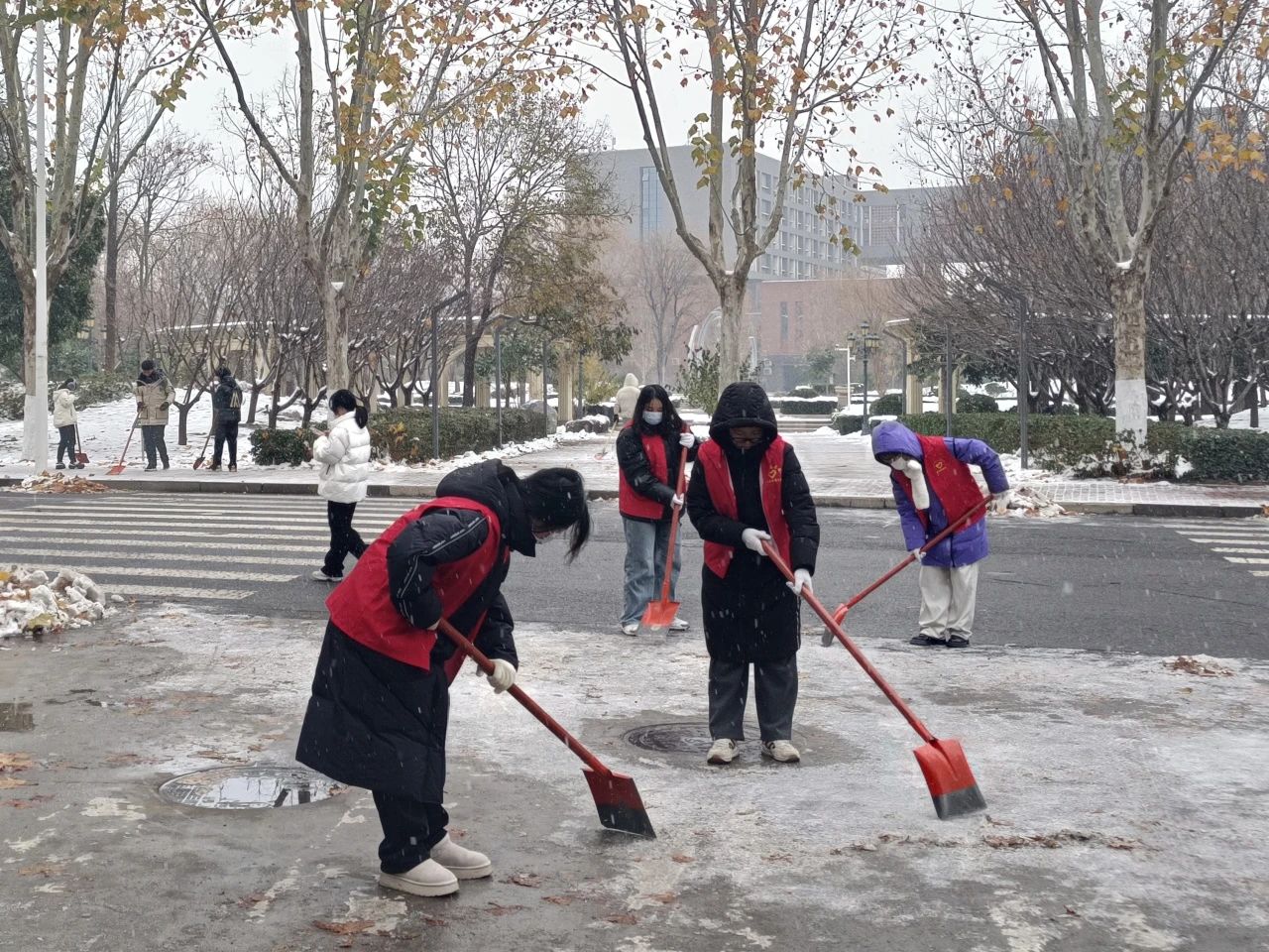 本次除雪活动不仅提高了校园出行的安全性,还展现了我院学生积极向上的风采,传递了团结互助的志愿奉献精神。