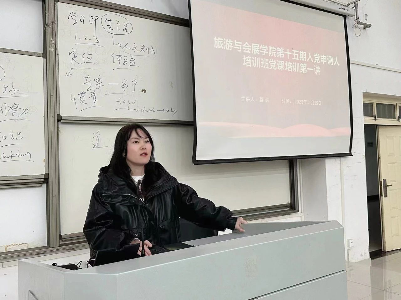 11月15日,旅游与会展学院于教学科研楼209召开第十五期入党申请人培训班党课培训第一讲,学院团委书记蔡萌担任主讲人,第十五期入党申请人到场参会。