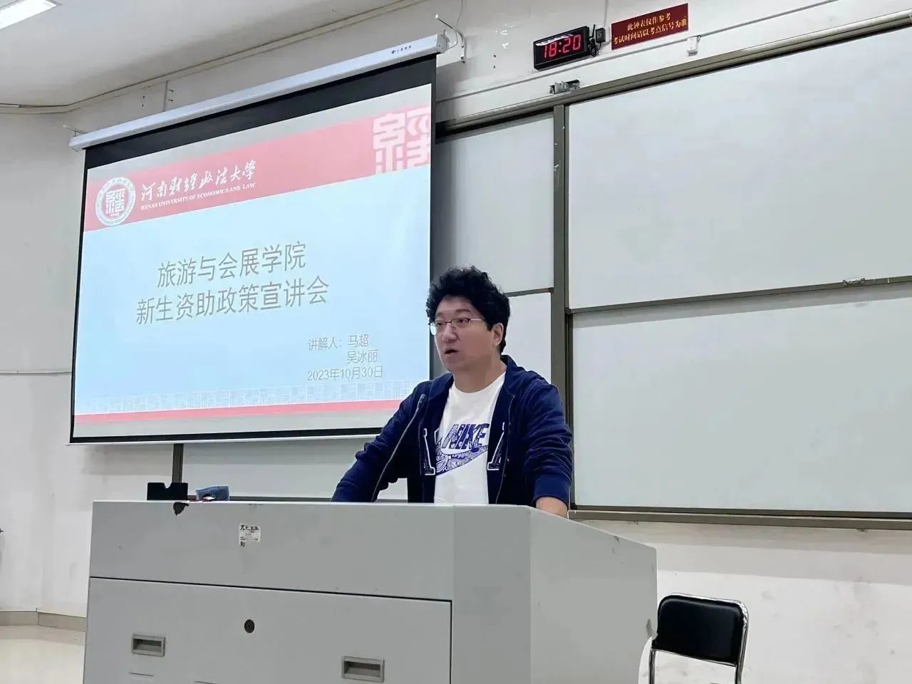为进一步贯彻落实国家资助政策,提高学院资助工作成效,10月30日,旅游与会展学院于第二教学楼219教室召开2023年新生入学资助政策宣讲会,学院团委副书记马超出席会议,2023级全体新生到场参加。会议由学生吴冰丽主持。