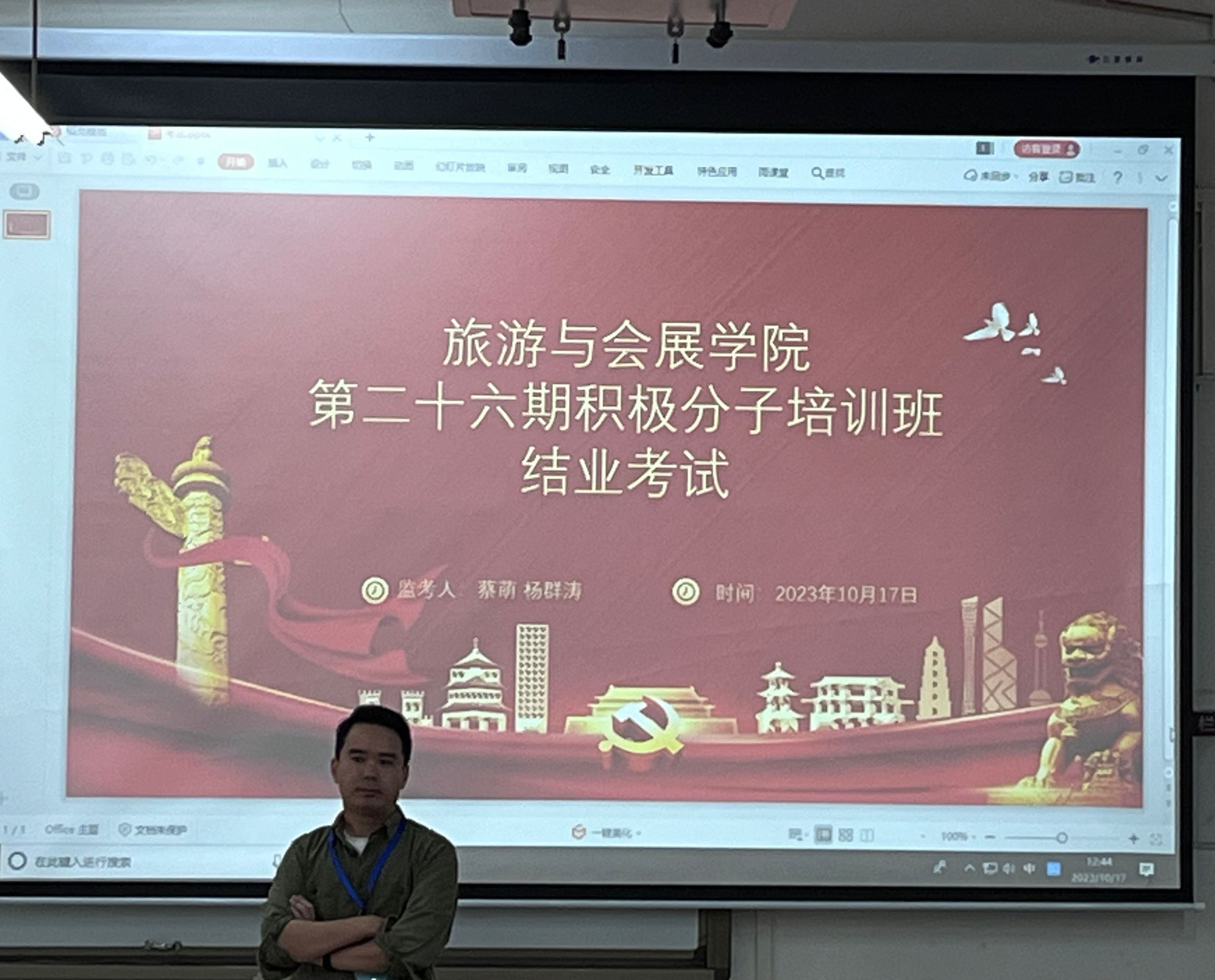 为了检验党课学习成果,10月17日,旅游与会展学院于第二教学楼116教室开展第二十六期积极分子培训班结业考试。学院团委书记蔡萌和兼职辅导员杨群涛担任监考员,学院第二十六期入党积极分子到场参加。