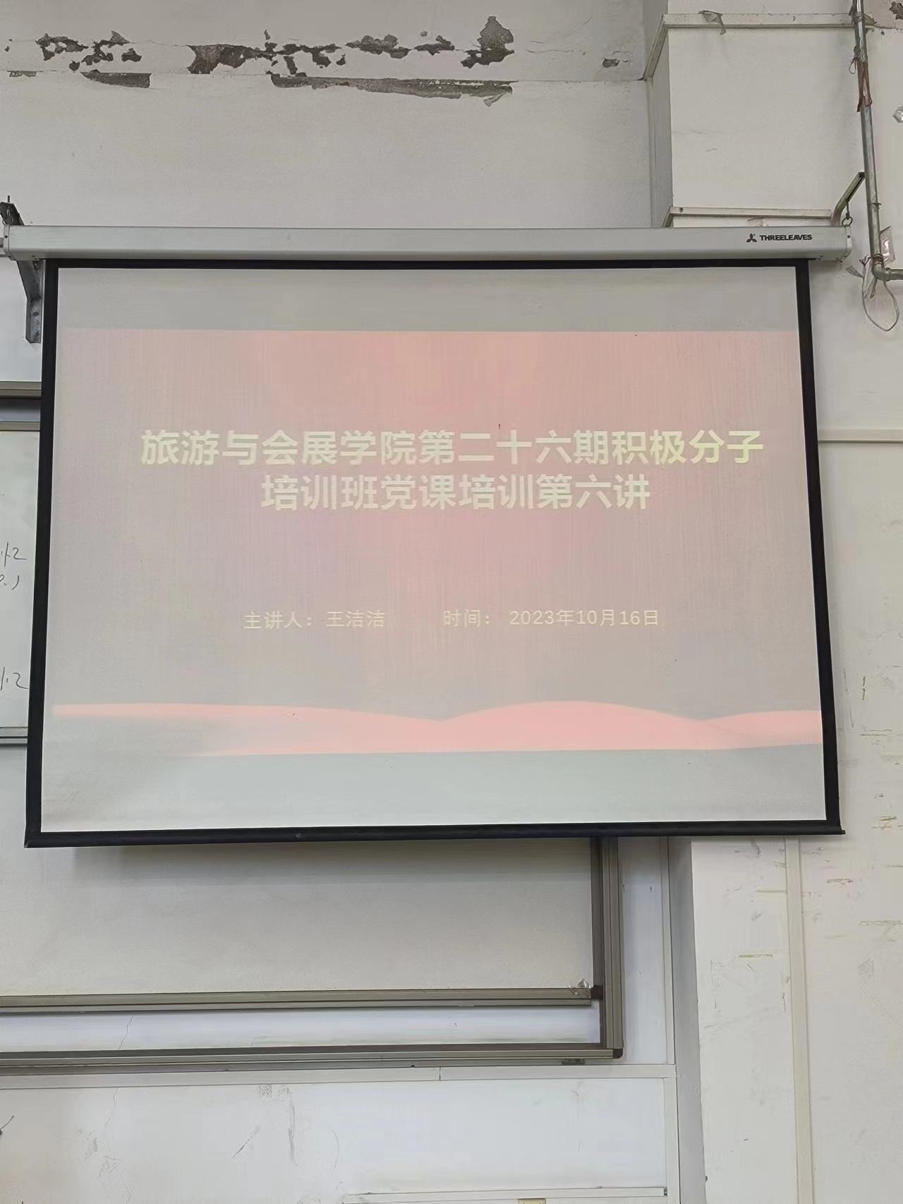 为进一步提高党员发展对象素质,加强对入党积极分子的教育培训。10月16日旅游与会展学院于教学科研楼209教室开展第二十六期入党积极分子党课培训第六讲。旅游管理教研室主任王洁洁老师担任主讲人。第二十六期积极分子培训班成员参加了此次党课。