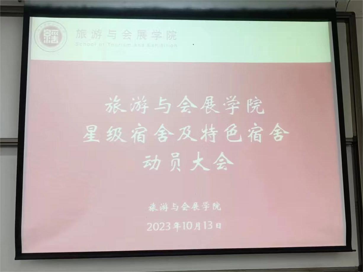 为创建良好的住宿环境,营造舒适的大学生活氛围,10月13日,旅游与会展学院在教学科研楼206教室开展星级宿舍及特色宿舍动员大会。学生杨晓越担任主持人,我院2023级全体宿舍长、各年级班长和副班长参加本次大会。