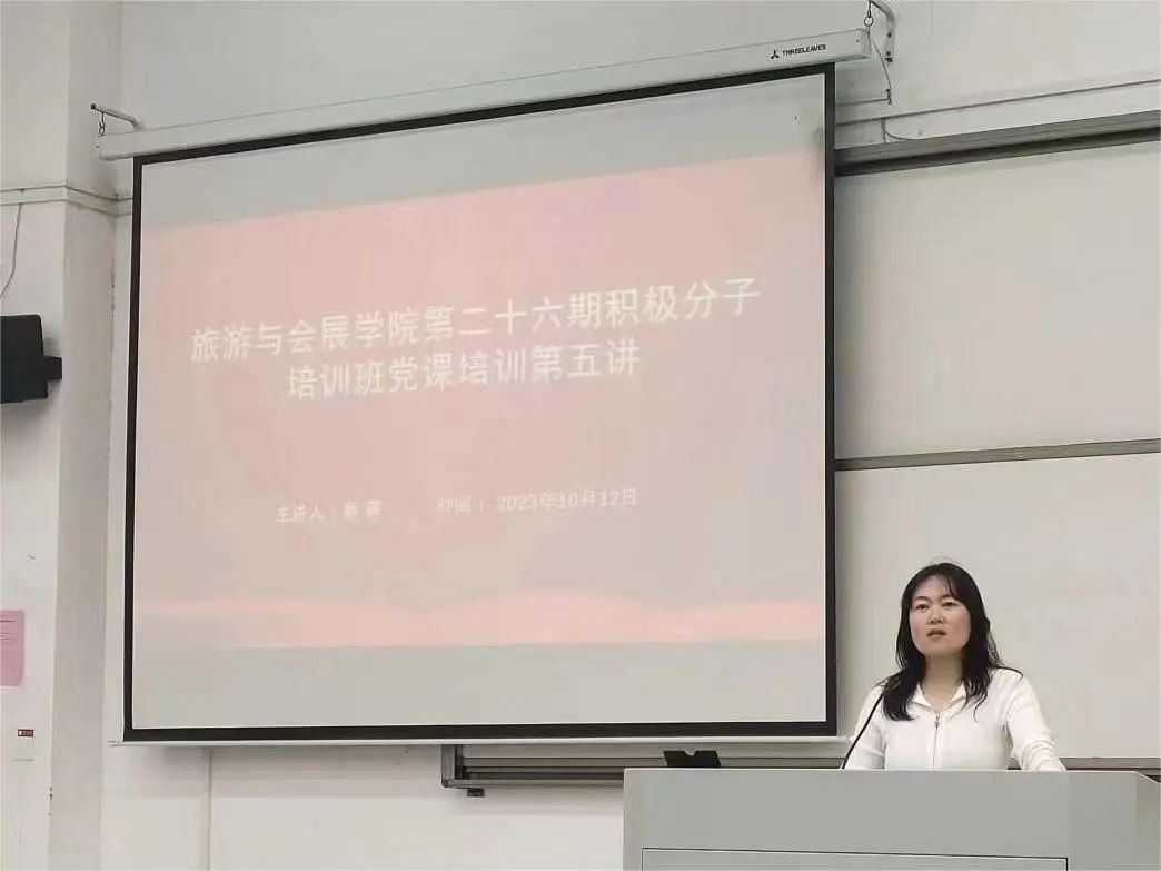 10月12日,旅游与会展学院于教学科研楼210教室开展第26期积极分子培训班党课培训第五讲,学院团委书记蔡萌担任主讲人,第26期积极分子培训班全体同学参加此次培训