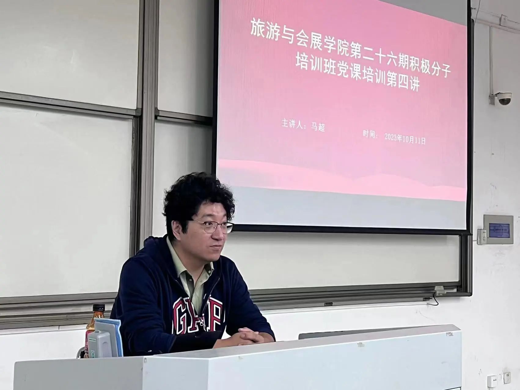 为了严把标准和程序关,高质量地开展党员发展工作,旅游与会展学院于10月11日在教学科研楼A座104教室开展第二十六期积极分子培训班党课培训第四讲。学院团委副书记马超担任主讲人,第26期积极分子培训班全体同学参加本次党课。