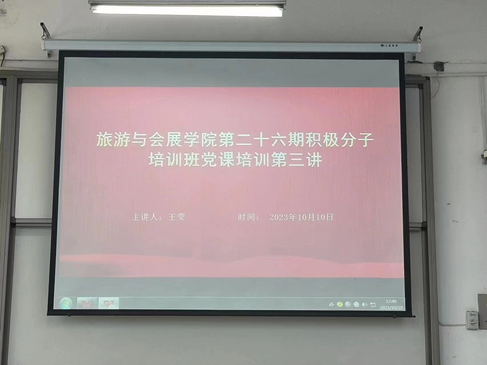 为进一步深化对入党积极分子的培养教育工作,提高党员发展对象质量。10月10日,旅游与会展学院于教学科研楼104教室开展第二十六期积极分子培训班党课培训第三讲,学院党委副书记王莹担任主讲人,第26期入党积极分子参加此次培训。
