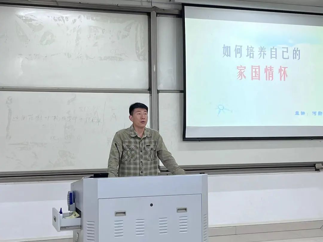 此次培训的主题是“培养家国情怀”。何勋首先以中美银河号事件和中国大使馆袭击事件为切入点,阐述了家国情怀的重要性。他强调,家国情怀与个人息息相关,也是大家积极投身祖国建设的内在动力。随后,他以刘秀祥、张富清、黄旭华等先进模范的感人故事为例,生动解释了家国情怀的内涵,让同学们感受到老一辈革命家为党和人民无私奉献的精神,增强了积极向党组织靠拢的决心和恒心。最后,何勋对同学们提出期许,他希望大家能够将“青春小我”融入“时代大我”之中,自觉承担起新时代青年的历史重任,为实现中华民族伟大复兴的中国梦接力奋斗。