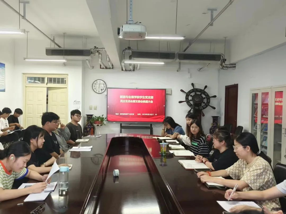 9月14日,旅游与会展学院于教学科研楼875会议室召开党支部组织生活会暨支委会换届大会。学院学生党支部书记蔡萌主持,学生党支部成员到场参加。