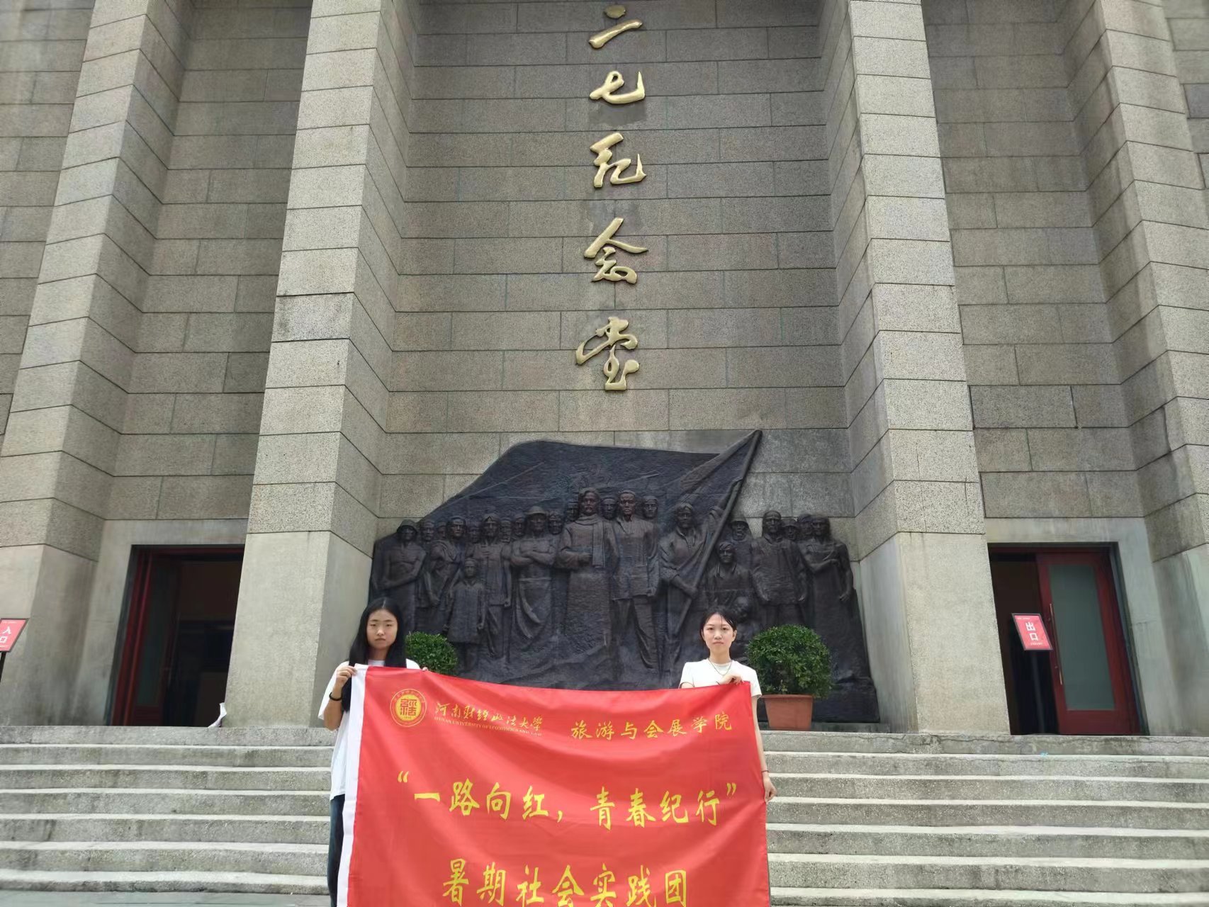 7月5日,实践成员苏雪红、曹璐铭前往河南省郑州市二七纪念堂进行参观,进入二七纪念堂,首先映入眼帘的是京汉铁路工人大罢工时的雕塑,工人们一个个高声呐喊的形象呈现在眼前。在纪念馆解说员的带领下,队员们参观了纪念堂的历史文物和照片,共同追溯二七光荣革命斗争的历史。红色基因,中国党史,二七纪念堂所纪念的那段历史,会永远被人们铭记。团队成员深刻感受到革命先烈们不怕牺牲、敢于付出、勇于奋斗的精神,她们表示,会认真学习并弘扬这种革命精神,增强红色理想信念,也明白了当今美好生活的来之不易,感谢先辈们的付出,缅怀先烈们的大无畏精神。