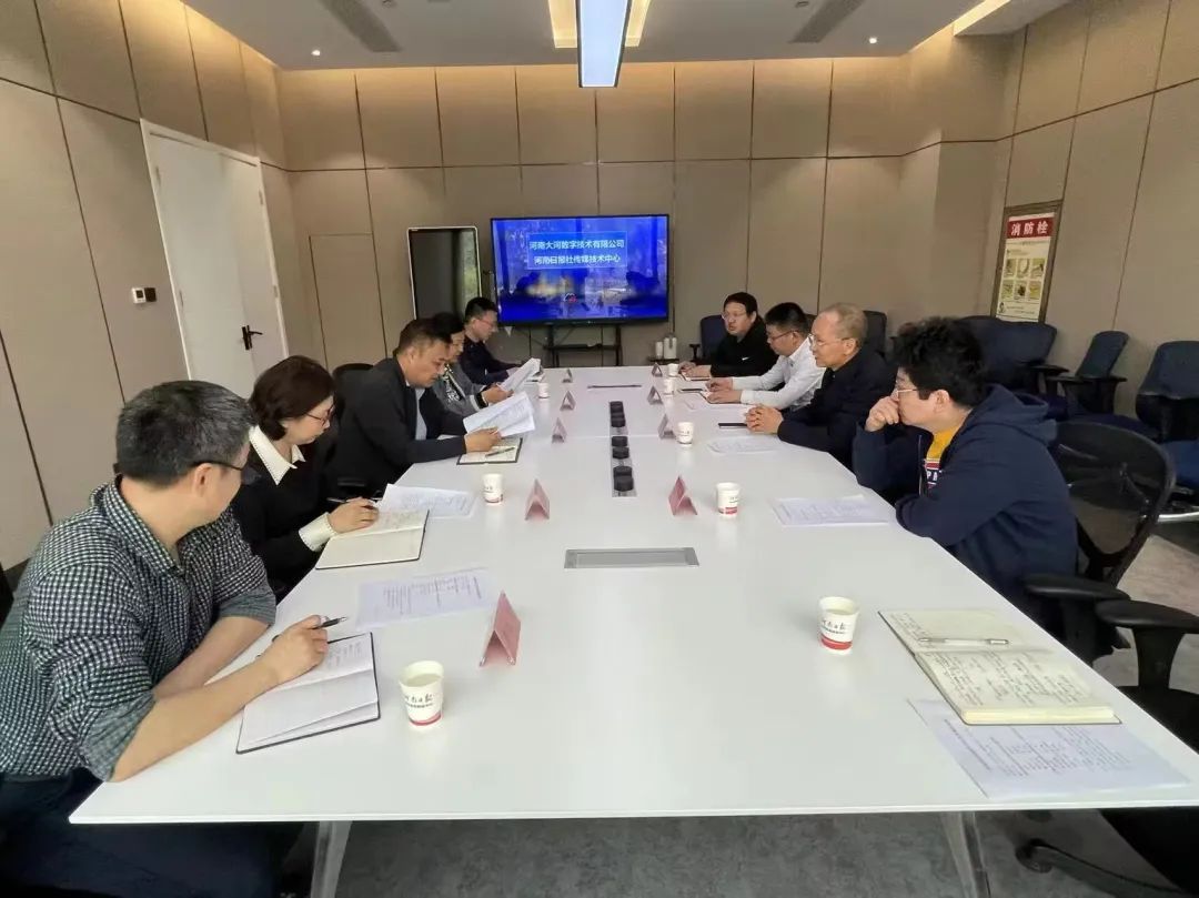 洽谈会上,赵现红院长先介绍了我院的发展历程、专业特色、学科优势和师资力量,表达了合作共建特色产业学院的愿望。王军总经理详细介绍了河南大河数字技术有限公司的基本情况,并提出双方在人才培养、资源共享、项目开发、教育教学等方面合作的意向。他表示,未来可期,打通产业链、教育链,实现产教融合,一定能够迎来双方良性的合作。会后,双方参观了该公司,并合影留念。