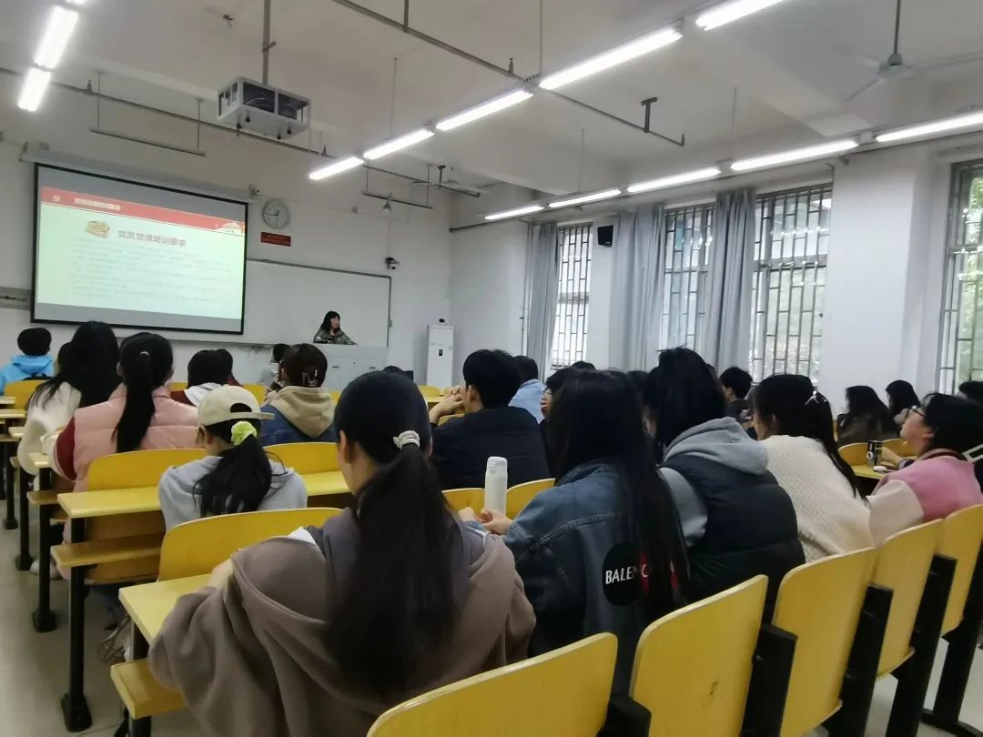 会上,蔡萌首先讲解了党员党课培训要求,并介绍了中国共产党发展党员工作流程图,包括申请入党、入党积极分子的确定和培养教育、发展对象的确定和考察、预备党员的接收、预备党员的教育、考察和转正。此外,蔡萌在会中强调,入党申请人应以“为人民服务”为纯正的入党动机。蔡萌告诫全体学生,青春是用来奋斗的,同学们应当不负青春,砥砺前行,增强自身责任意识,为实现中华民族伟大复兴而奋斗。