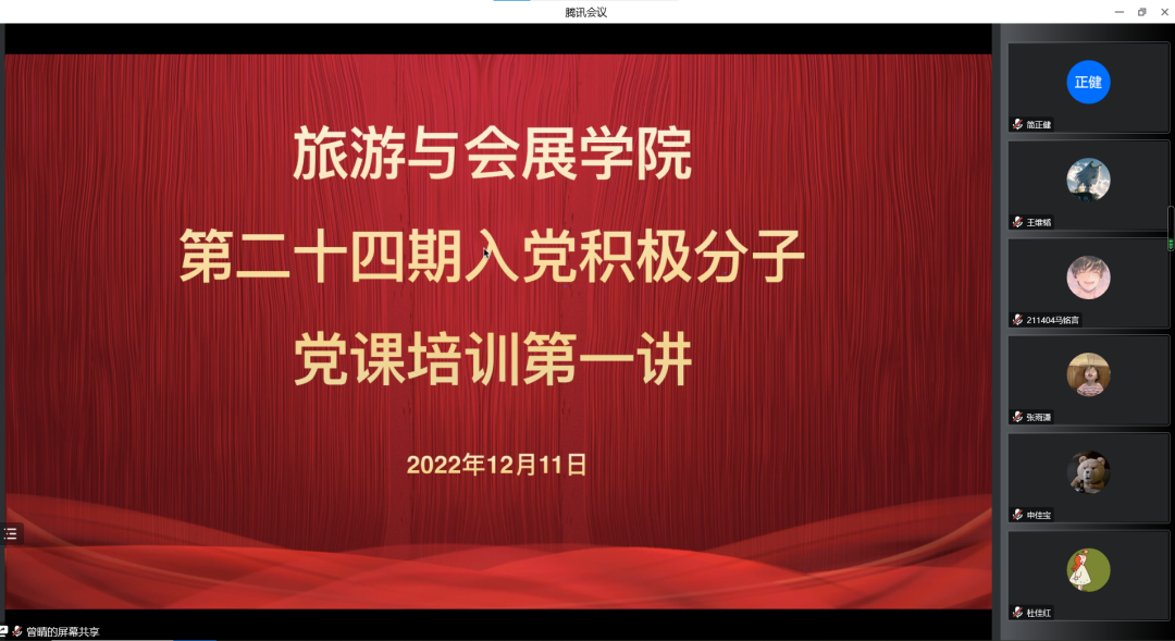 为了增进学生对入党流程的了解,对党组织有更深一步的认识,12月11日,旅游与会展学院于腾讯会议开展第二十四期入党积极分子党课培训第一讲。第二十四期入党积极分子参会,学院副院长徐贵宏担任主讲人。