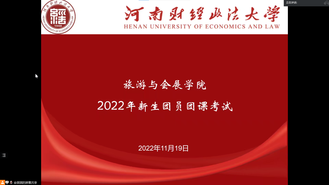 为检验2022级学生对团课学习的掌握程度,11月19日,旅游与会展学院于腾讯会议组织2022级团员进行团课考试,学院主要学生干部担任监考员,2022级团员参加考试。