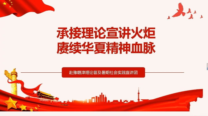 旅游与会展学院赴豫赣津理论普及宣讲暑期社会实践团成员前往就近中小学,展开关于习近平新时代中国特色社会主义思想宣讲活动,把习近平总书记的重要思想及重要讲话精神和对青年学生的寄语整理、理解并进行宣讲,传达了习近平总书记对新时代青年的殷切期望。