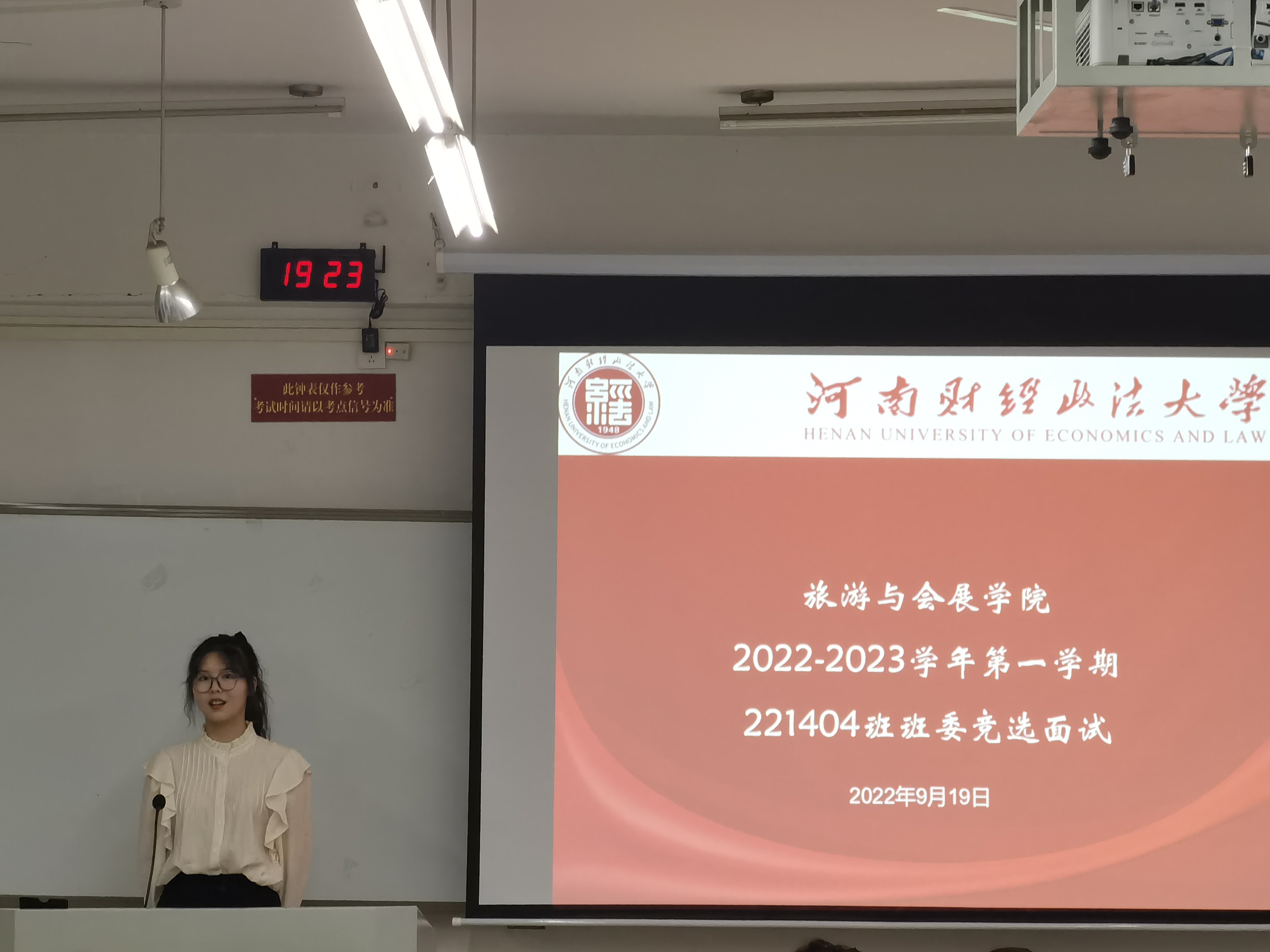 9月19日,旅游与会展学院组织2022级新生分别于第一教学楼401、402、403、404教室召开班委竞选面试,兼职辅导员殷浩、刘雨濛,2022级全体新生到场参会,各班代理班主任担任主持人。