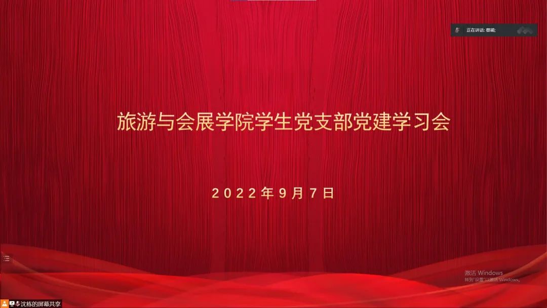 为有效监督学生党支部党员对党建规章制度的学习成果,进一步加强党支部建设,9月7日,旅游与会展学院于腾讯会议召开学生党支部党建学习会,学生党支部全体成员参加会议,学院学生党支部书记蔡萌担任主讲人。