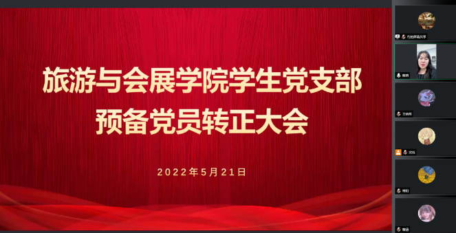 5月21日,旅游与会展学院学生党支部于腾讯会议召开预备党员转正大会。学生党支部书记蔡萌担任主持人,党支部成员到场参加。
