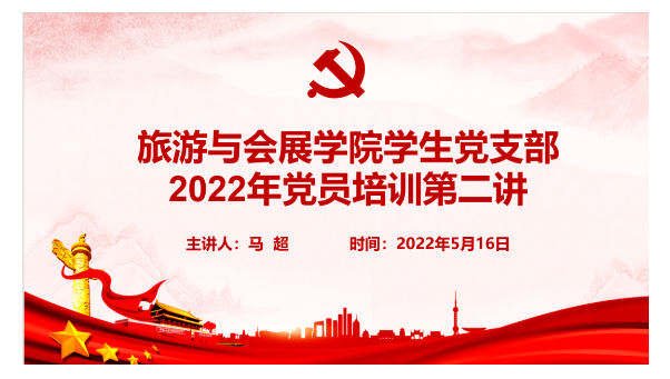 5月16日,旅游与会展学院学生党支部于腾讯会议开展2022年党员培训第二讲,学院团委副书记马超担任主讲人,全体党员参会。
