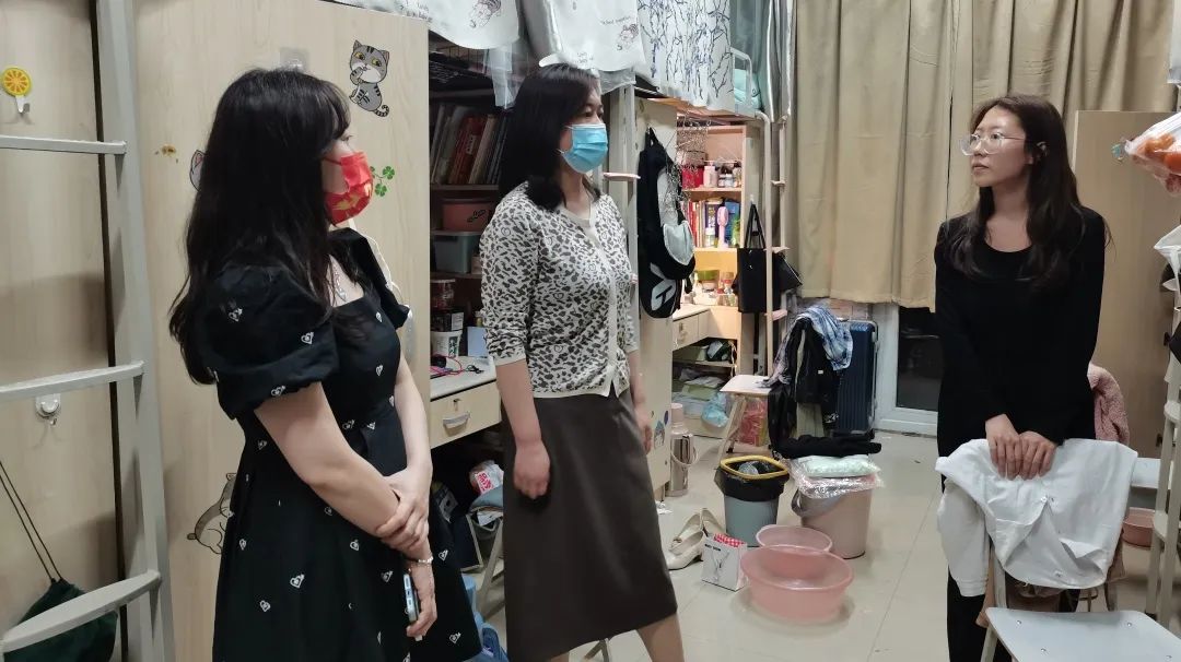 我院党委书记原方、党委副书记王莹、团委书记蔡萌、团委副书记马超响应学校疫情防控号召,第一时间入住校园,以办公室为家,与学生同吃同住,共克时艰,24小时守护学院学生的身体健康。期间,他们深入走访全院每一间宿舍,密切关心学生们的每日健康情况、钉钉打卡情况、网课学习状态,及时做好同学们的思想引领、心理疏导等各项工作。加强摸排管控力度,积极与年级长、班长、宿舍长等相关负责人保持联系,动态掌握学生的学习生活情况。