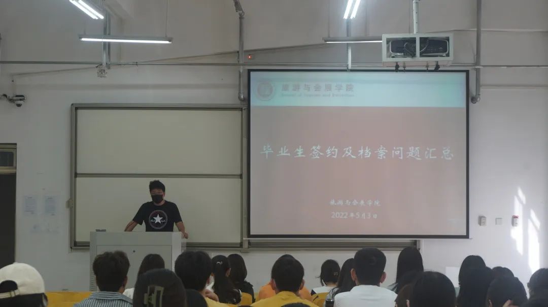 5月3日,旅游与会展学院于教学科研楼107教室召开毕业生签约及档案问题汇总工作会。学院党委副书记王莹、团委书记蔡萌、团委副书记马超出席会议,学生王柯柯主持会议,2022届毕业生参会。