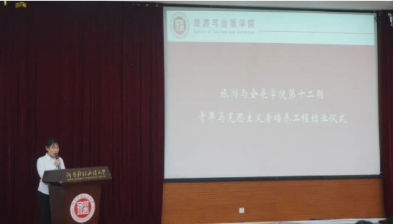4月26日,旅游与会展学院于第一教学楼220教室举行第十二期青马工程培训班结业仪式。学院党委副书记王莹、团委书记蔡萌、团委副书记马超出席会议,学生陈紫薇担任主持人,学院团学主要学生干部及2019-2021级学生代表参会。