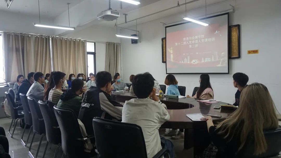 4月12日,旅游与会展学院于教学科研楼875会议室召开第十二期入党申请人党课培训第二讲,学院教职工第一党支部书记王洁洁担任主讲人,第十二期入党申请人到场参加。