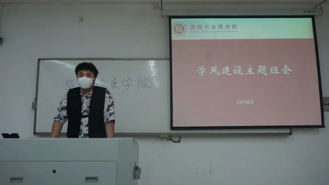 4月10日,旅游与会展学院在教学科研楼111、113、115教室召开学风建设主题班会。学生郭文军主持会议,2020—2021级全体学生参会。