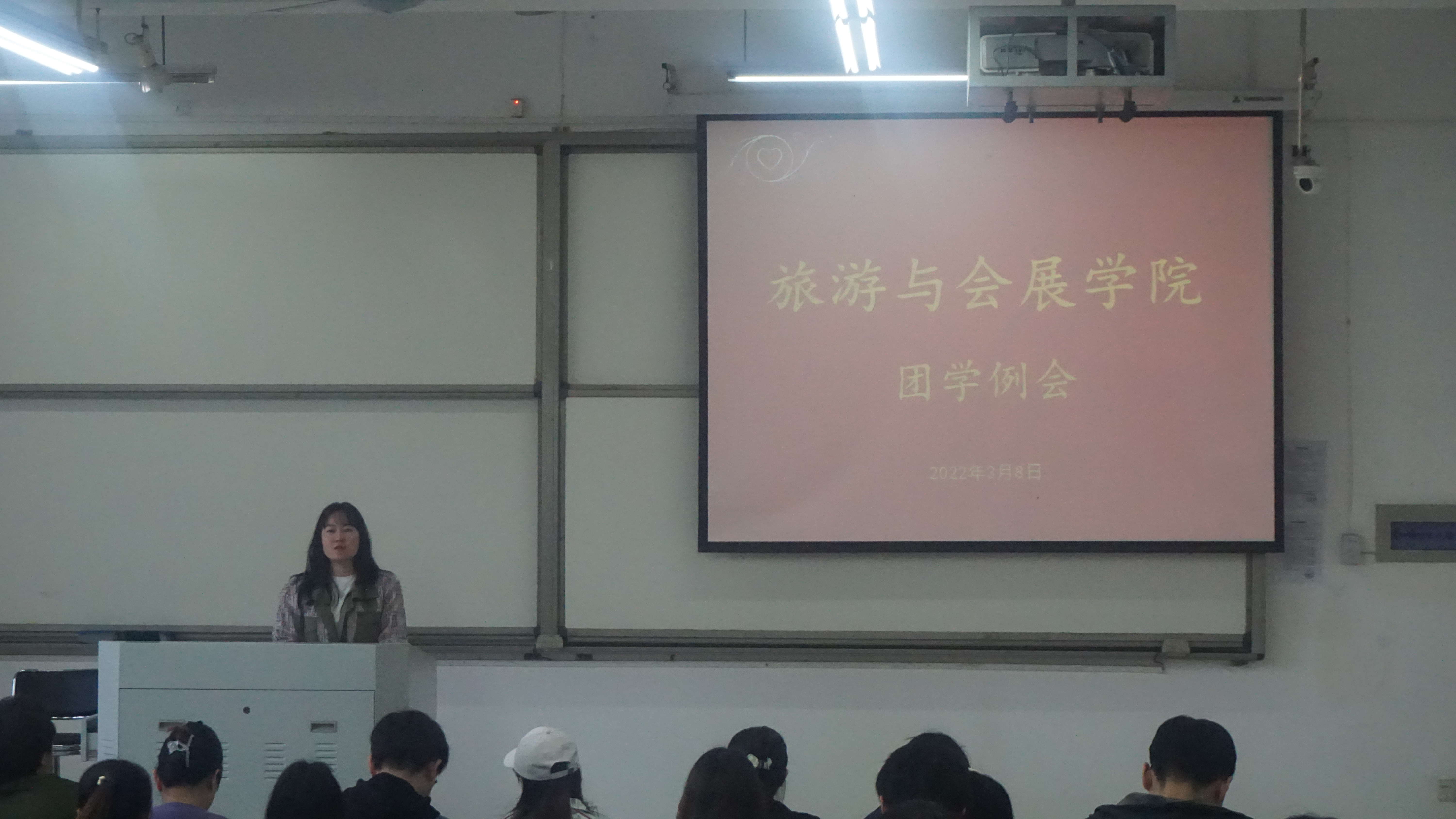 3月8日,旅游与会展学院于教学科研楼114教室召开2021-2022学年第二学期第二次团学例会,学院团委书记蔡萌、团委副书记马超出席会议,主要学生干部到场参加会议。