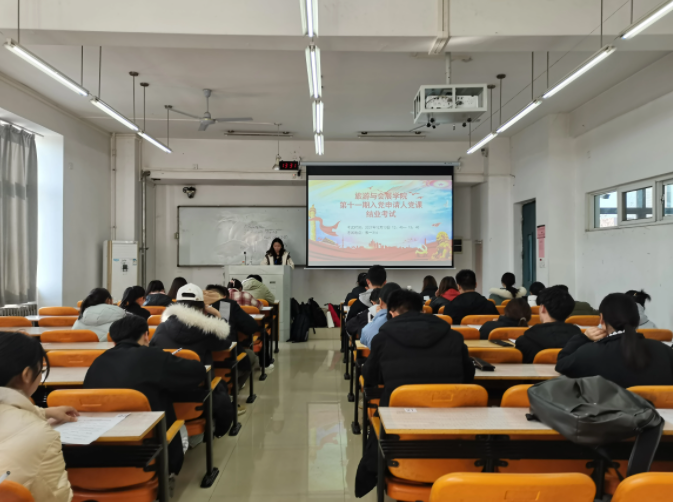 为检验入党申请人对党的理论知识的学习效果,12月13日,旅游与会展学院于第一教学楼312至314教室开展第十一期入党申请人结业考试,学院主要学生干部担任监考员,第十一期入党申请人到场参加考试。