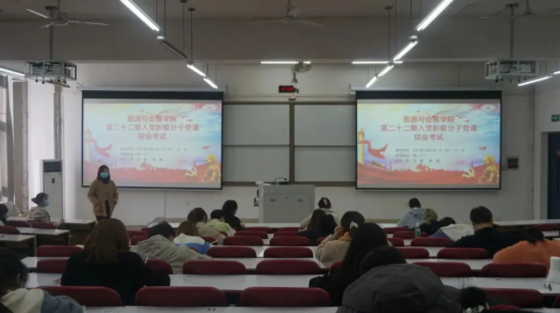 12月3日,旅游与会展学院于第一教学楼117教室开展第二十二期入党积极分子结业考试。学院党委副书记王莹、团委书记蔡萌担任监考老师,第二十二期入党积极分子到场参加考试。