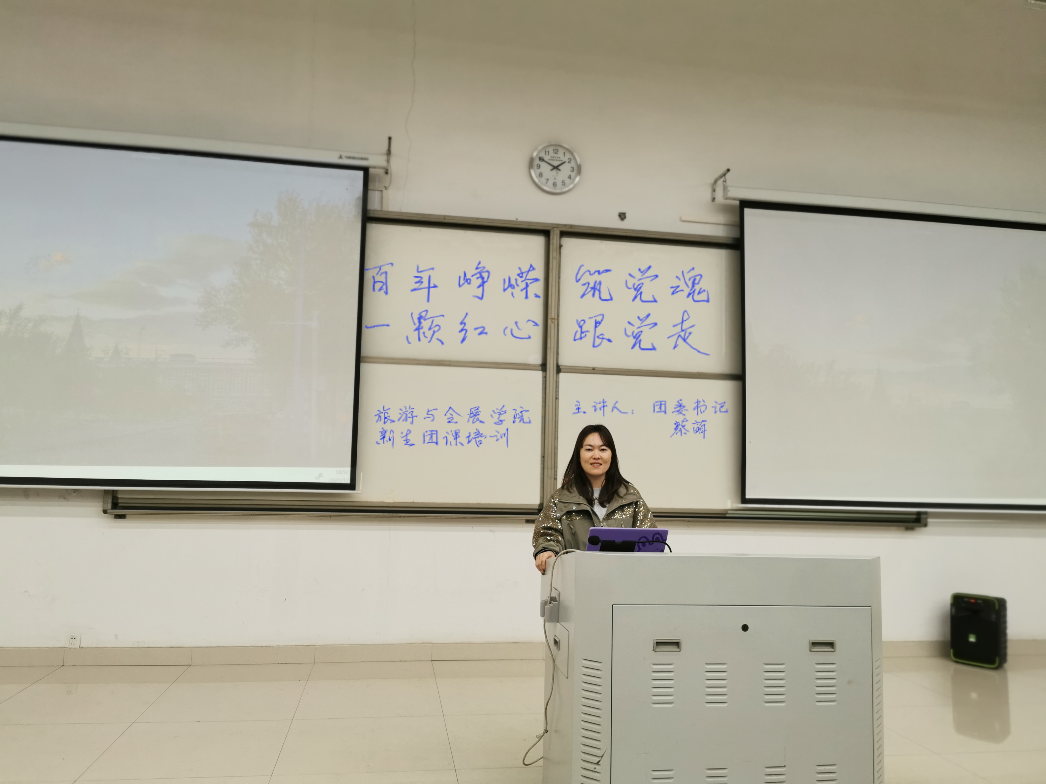 12月1日,旅游与会展学院于教学科研楼109教室开展2021级新生团课培训第三讲,学院团委书记蔡萌担任主讲人,2021级全体学生到场参加。