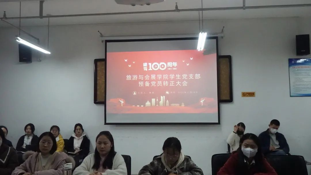 11月26日,旅游与会展学院于教学科研楼875会议室召开预备党员转正大会,学院学生党支部书记蔡萌主持会议,党支部成员到场参加。