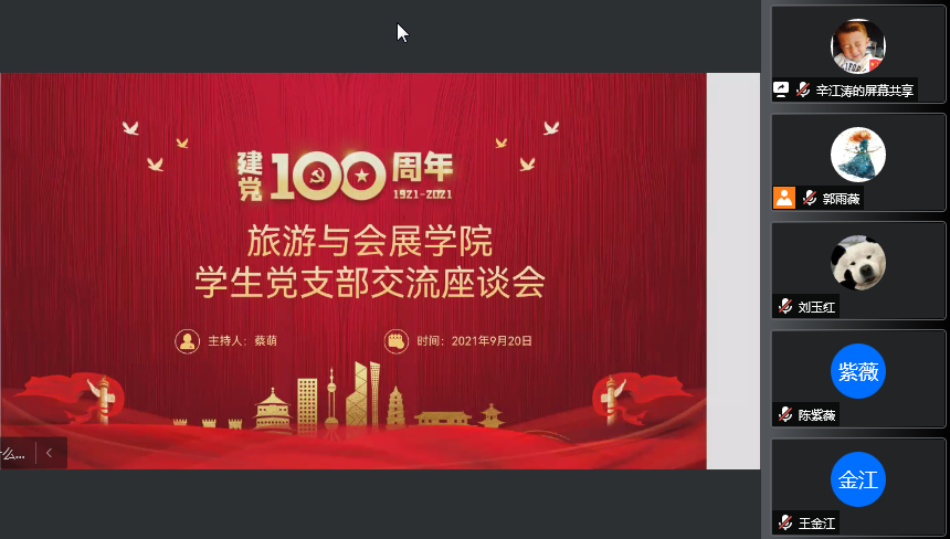 9月20日,旅游与会展学院学生党支部于腾讯会议召开交流座谈会,学生党支部书记蔡萌主持会议,支部成员参加会议。