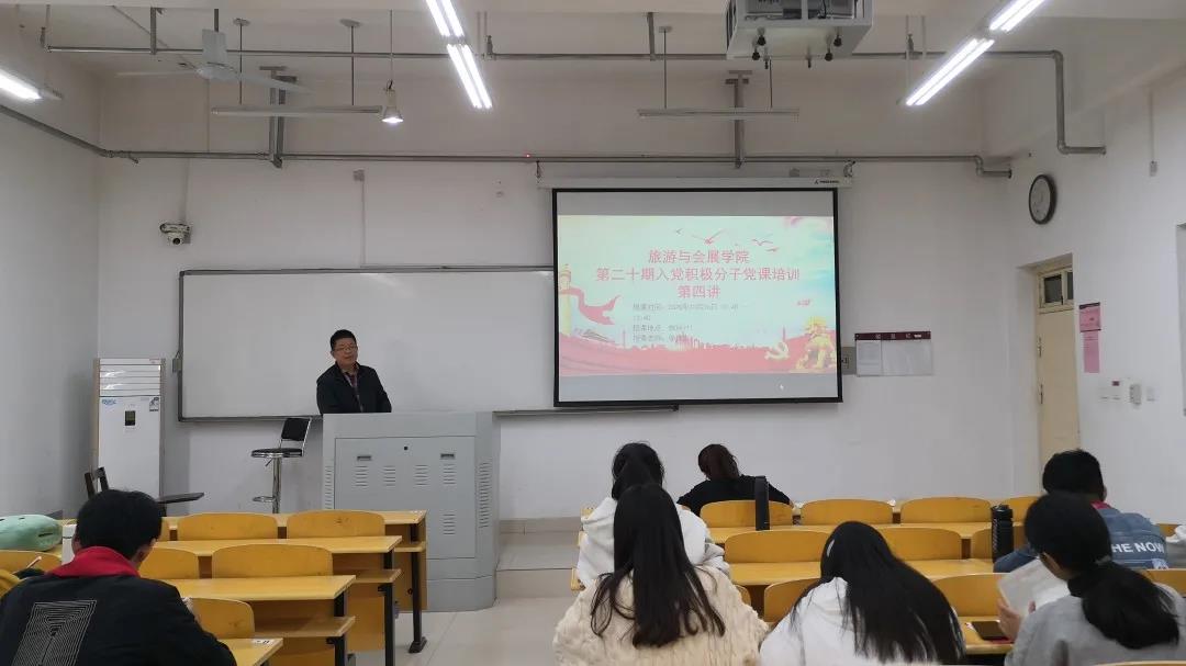 10月16日,旅游与会展学院在教学科研楼111教室召开第二十期入党积极分子党课培训第四讲。学院副院长徐贵宏担任主讲人,第二十期入党积极分子到场参加。