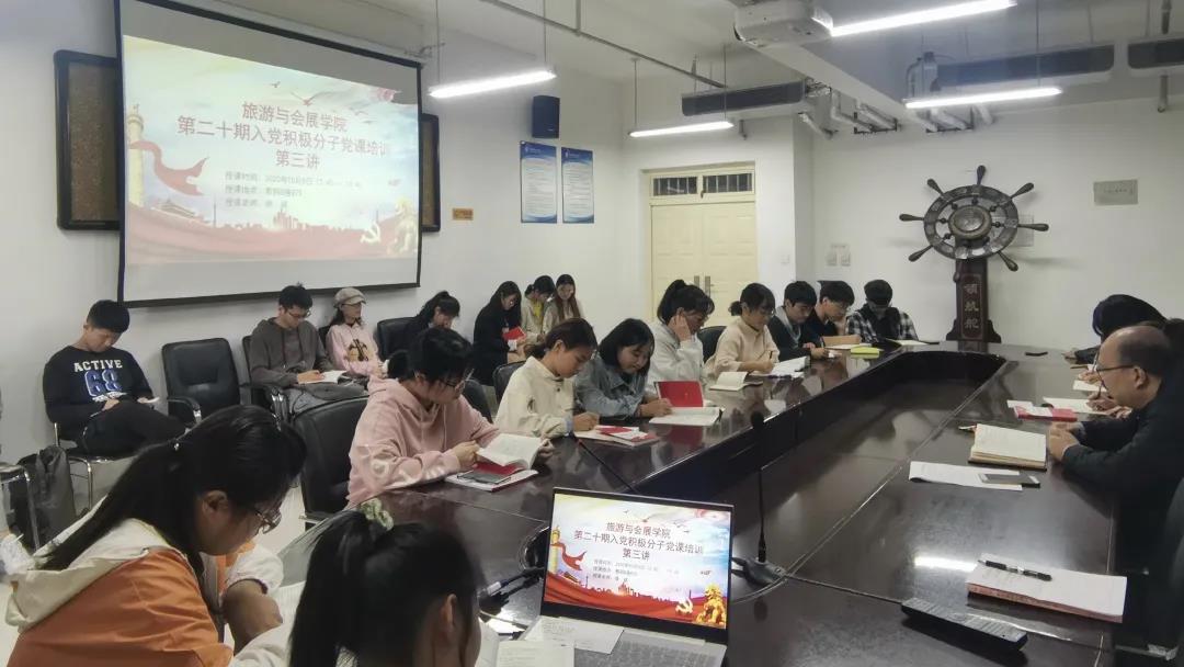 10月8日,旅游与会展学院在教学科研楼875会议室召开第二十期入党积极分子党课培训第三讲。学院党委副书记徐斌担任主讲人,第二十期入党积极分子到场参加。