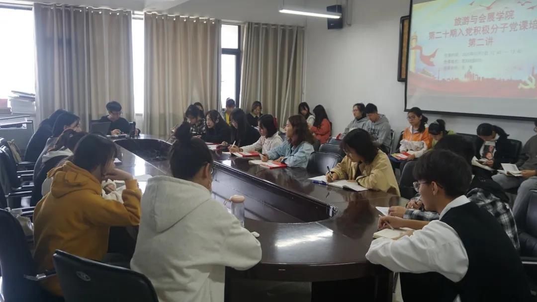 10月7日,旅游与会展学院在教学科研楼875会议室召开第二十期入党积极分子党课培训第二讲,学院副院长王莹担任主讲人,全体入党积极分子培训对象到场参加。