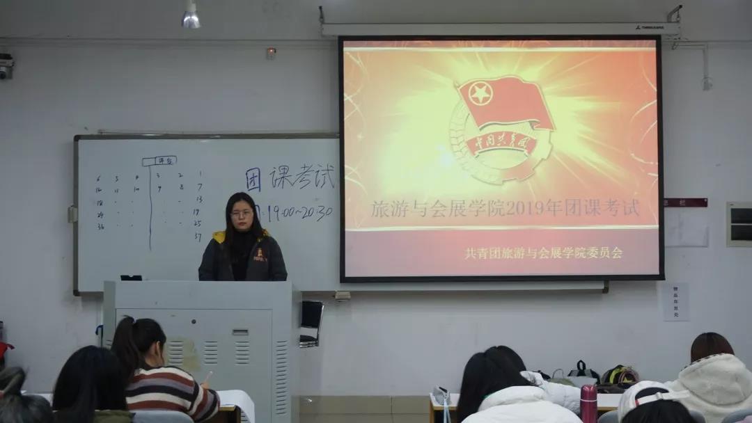 11月27日晚,旅游与会展学院于第一教学楼401、402、403、404教室开展团课考试,2019级全体学生及新入团学生到场参加。