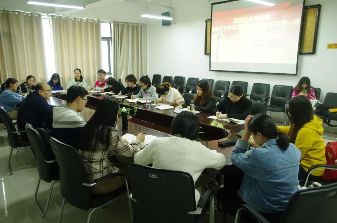 10月23日,旅游与会展学院党委在教学科研楼875会议室召开2019下半年党员发展对象党课学习第一讲,学院党委副书记徐斌担任主讲。