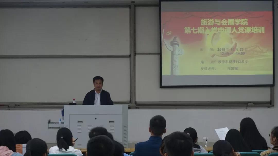 为提高入党申请人的思想觉悟,加深入党申请人对党的认识,10月23日,我院于教学科研楼科112教室开展第七期入党申请人党课培训第三讲,学院党委书记汪国强担任主讲人。