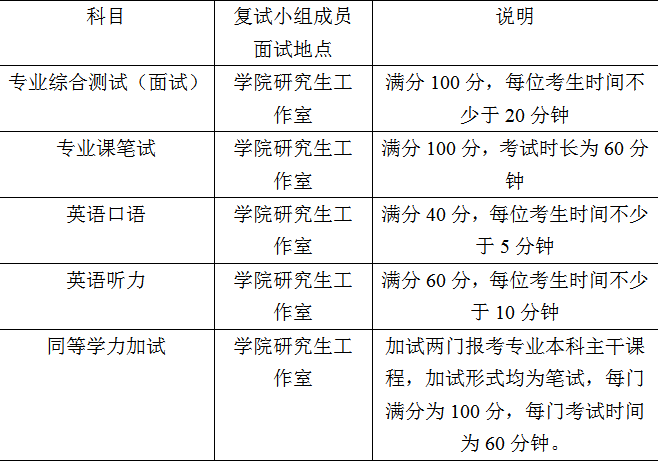 复试内容包括专业课笔试、专业综合测试(面试)和英语能力测试(听力和口语)。