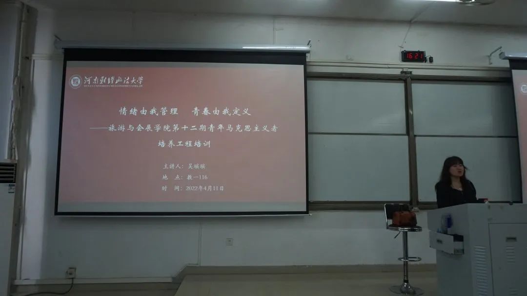 4月11日,旅游与会展学院于第一教学楼116教室举办第十二期青马工程培训第四讲。培训会由williamhill英国素质教育中心教师吴瑶瑶主讲,学院团委书记蔡萌出席并主持会议,团学主要学生干部及2019—2021级学生代表参会。