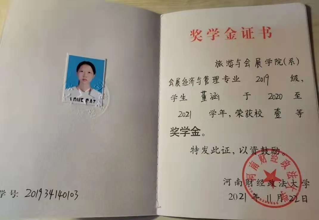 董涵,党员,旅游与会展学院2019级会展经济与管理专业学生,现任学院学业发展部部长,连续两年综合成绩年级排名第一,荣获“学习之星”、“暑期社会实践先进个人”等称号,获得校级一等奖学金、全国高校商业精英挑战赛商务会奖旅游策划竞赛奖项二等奖等。接下来让我们一同走进董涵同学的学习世界吧!