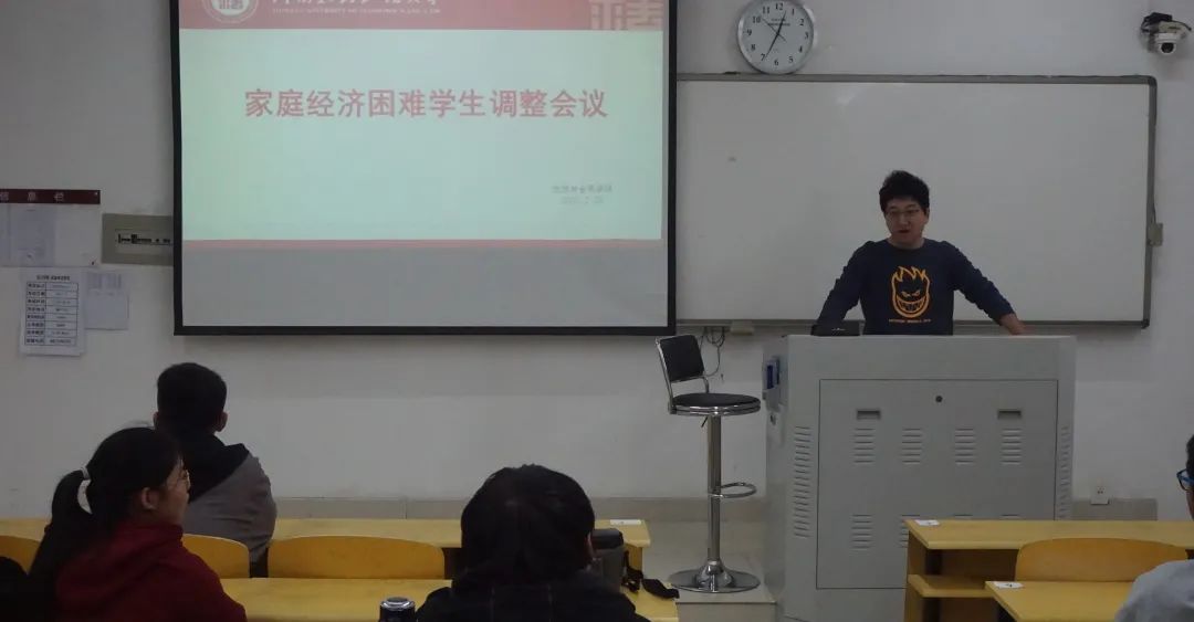 2月28日,旅游与会展学院于教学科研楼105教室召开家庭经济困难学生调整会议,会议由学院团委副书记马超主持,各班相关人员到场参加。
