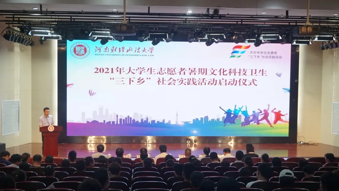 7月9日,我校于行政楼东配楼202报告厅举行2021年大学生志愿者暑期文化科技卫生“三下乡”社会实践活动启动仪式。校党委副书记李慧军、副校长刘荣增出席仪式,各相关职能部门负责同志以及我院团委书记蔡萌、实践团队学生代表到场参加会议。