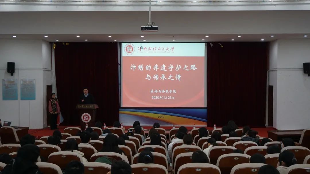 为了提高同学们的知识素养,感悟中华优秀传统文化中蕴含的价值理念,11月23日,旅游与会展学院在第一教学楼220报告厅举办“汴绣的非遗守护之路与传承之情”主题讲座。学院邀请到中国非物质文化遗产“汴绣”传承人张建淑担任主讲人,旅游管理教研室主任周春林出席会议,2018级、2019级学生到场参加。