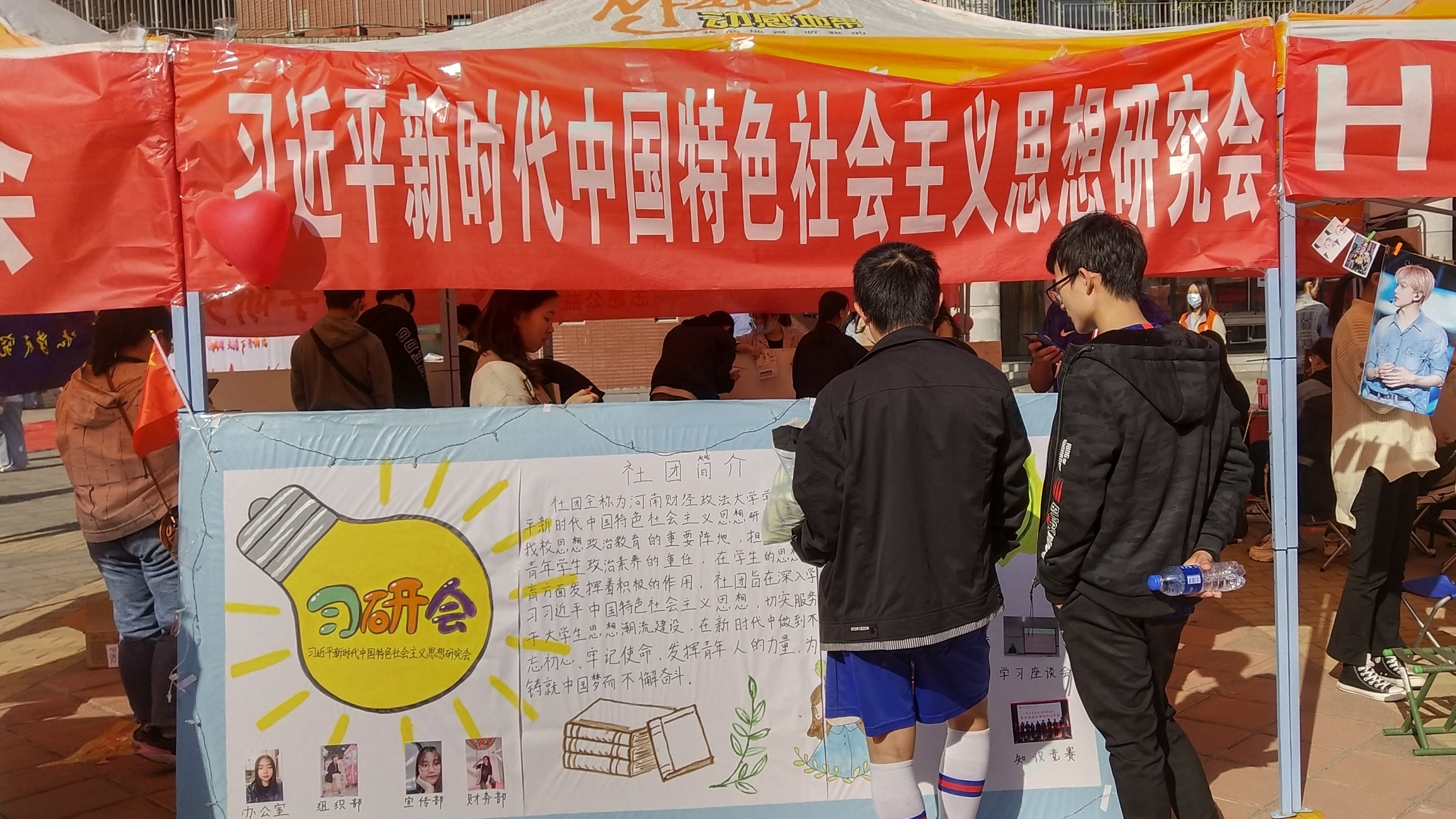 我院共设有一个理论学习型社团和三个专业实践型社团,分别为“习近平新时代中国特色社会主义思想研究会”、“旅游管理学会”、“酒店管理学会”与“会展经济与管理协会”。各社团负责人提前到达现场进行帐篷搭建、展板摆放等准备工作,精心策划各项活动,细致耐心地为前来咨询的学生讲解社团基本概况、特色活动以及入会相关事宜,帮助同学们了解、感受社团文化。同学们热情高涨,积极参与我院社团招新活动,踊跃报名。