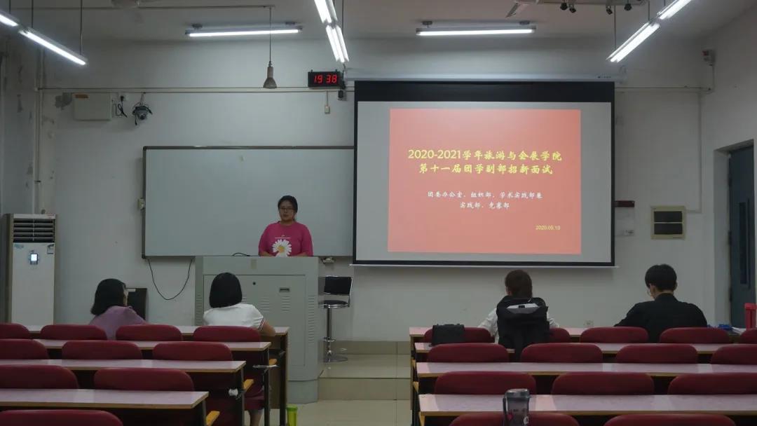 9月10日,旅游与会展学院于第一教学楼205至210教室开展第十一届团学副部换届工作,学院主席团成员及各部部长担任评委,竞聘学生到场参加。