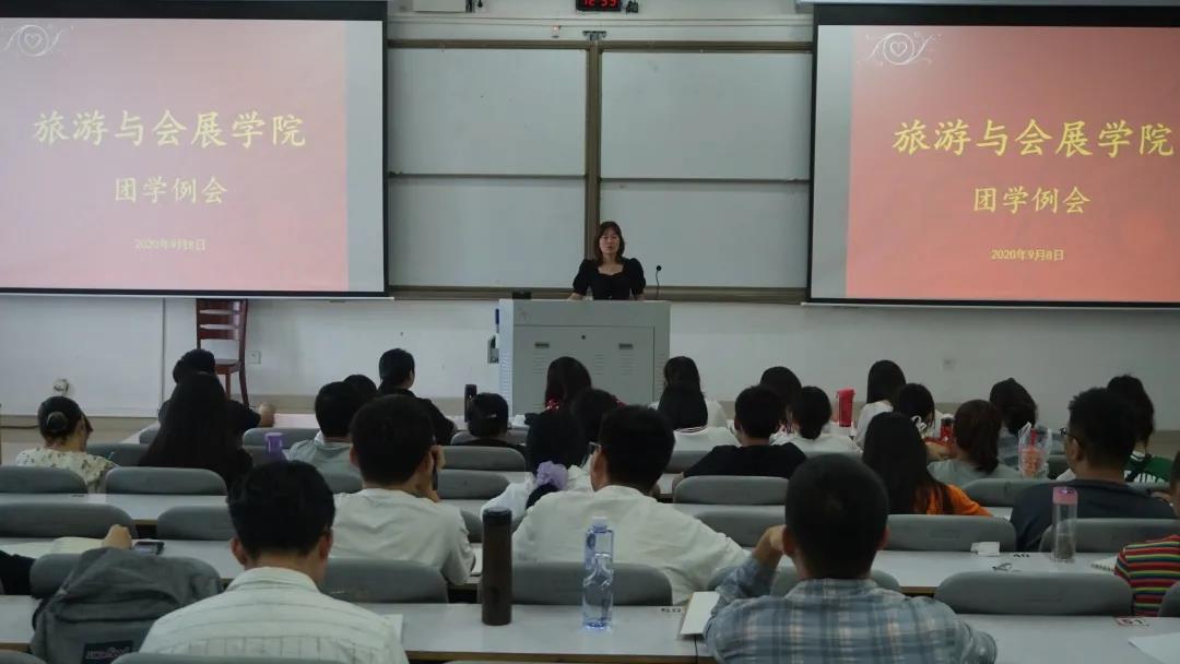 为使学院各项工作正常开展,9月8日,旅游与会展学院于第一教学楼215教室召开新学期第一次团学干部例会。学院团委书记蔡萌出席会议,全体学生干部到场参加会议。