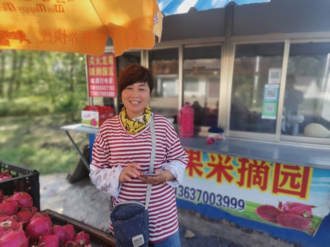 实践队员在火龙果种植基地的工作人员带领下,走访参观特色扶贫产业,实地考察当地特色农产业的发展。队员了解到,定远县烨阳火龙果种植基地拥有150多亩的无公害火龙果生产大棚,主要经营业务为火龙果种植、采摘以及深加工。经工作人员介绍,该基地的火龙果及火龙果深加工产品畅销长三角地区,收入可观,对当地脱贫有着重大作用。